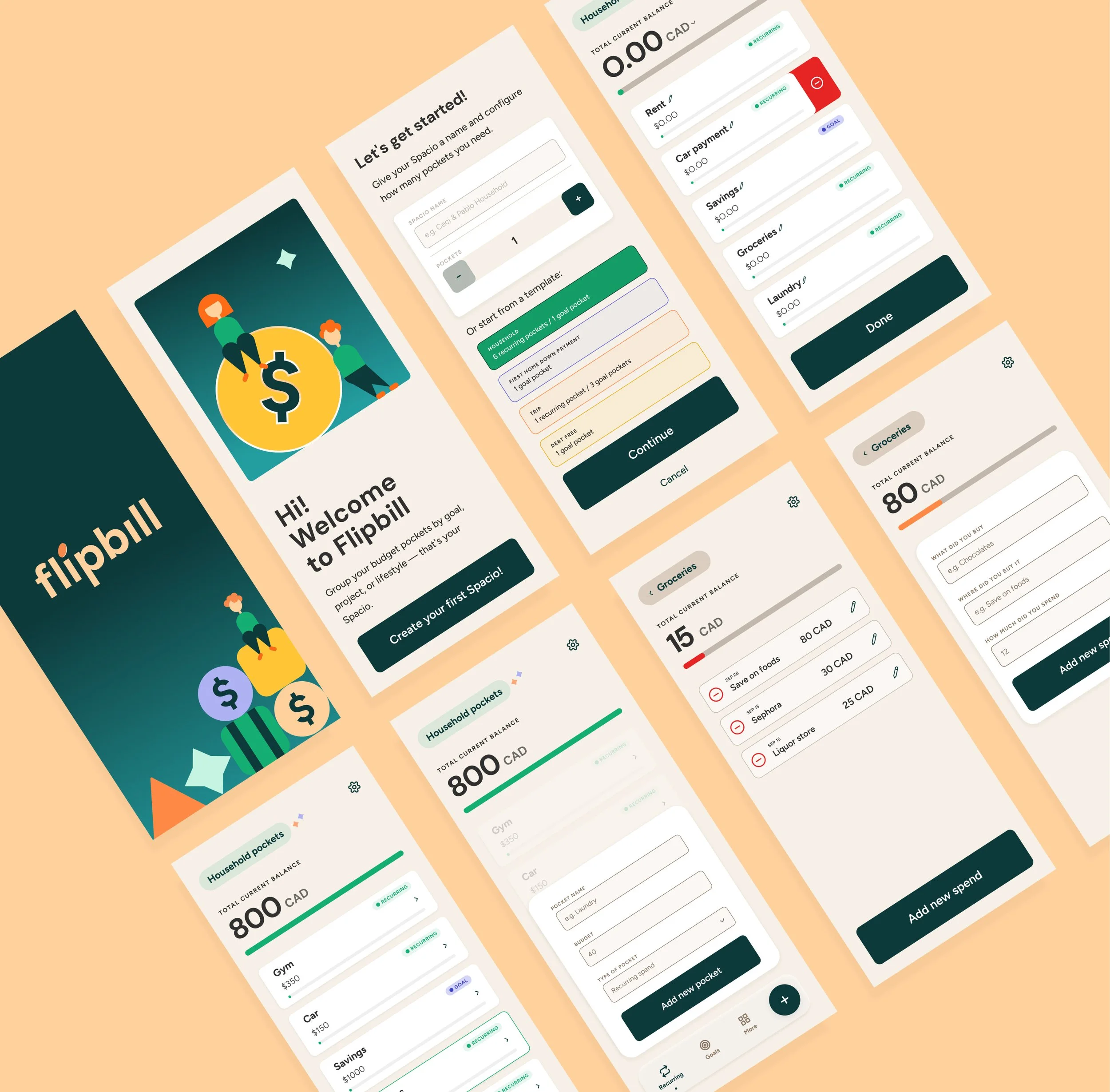 Flipbill was born from a simple insight: most people were never taught how to budget — and it shows. The idea is to help users flip the habit of watching every paycheck vanish into bills and debt, by giving them a smarter way to take control. Through “pockets” inside “spacios”, users can categorize spending, group financial goals, and actually see where their money is going.